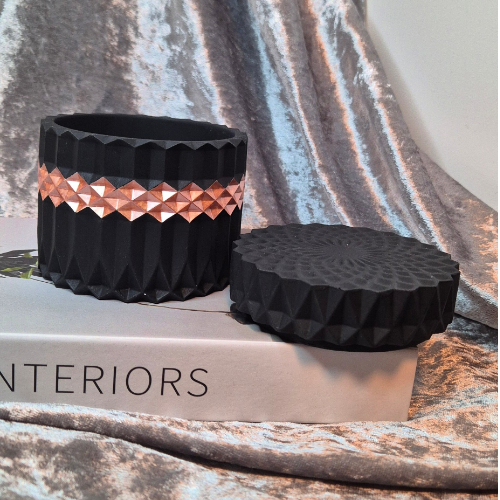Noiréa vangt het diepe zwart van cement, elegant en stoer, met een bronzen accent dat warmte en luxe toevoegt.
