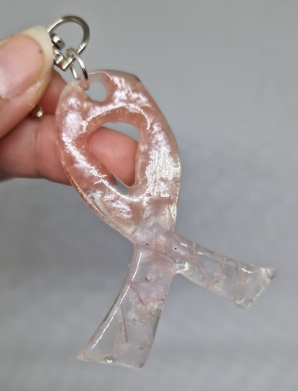 50% van de opbrengst van de verkoop van de Pink Ribbon sleutelhanger gaat naar de KWF Stichting.
